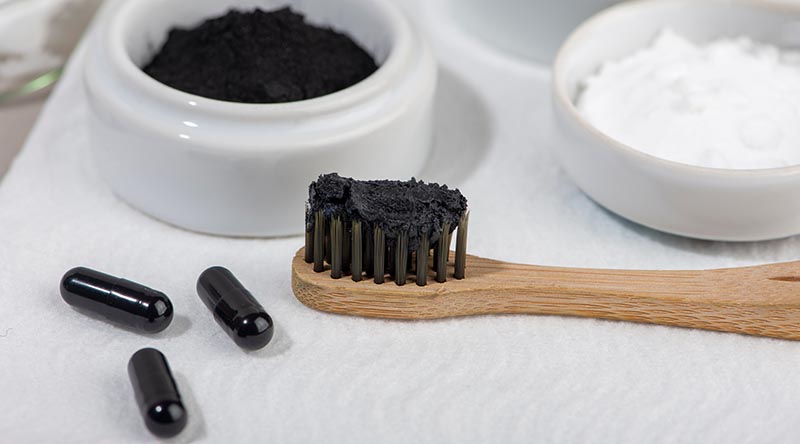 Aktivkohle ist ein poröser, feinkörniger Kohlenstoff, der die Fähigkeit hat, Toxine, Chemikalien und Geruchsmoleküle zu absorbieren und an sich zu binden. Es kann in Pulverform, Kapseln oder auch in Zahnpasten gefunden werden. Das Pulver wird in Verbindung mit Wasser und ohne weitere Zusätze zum Zähneputzen verwendet. Die Kapsel hingegen wird vor dem Putzen im Mund zerbissen und die schwarze Zahnpasta wird wie jede andere Zahnpasta verwendet.